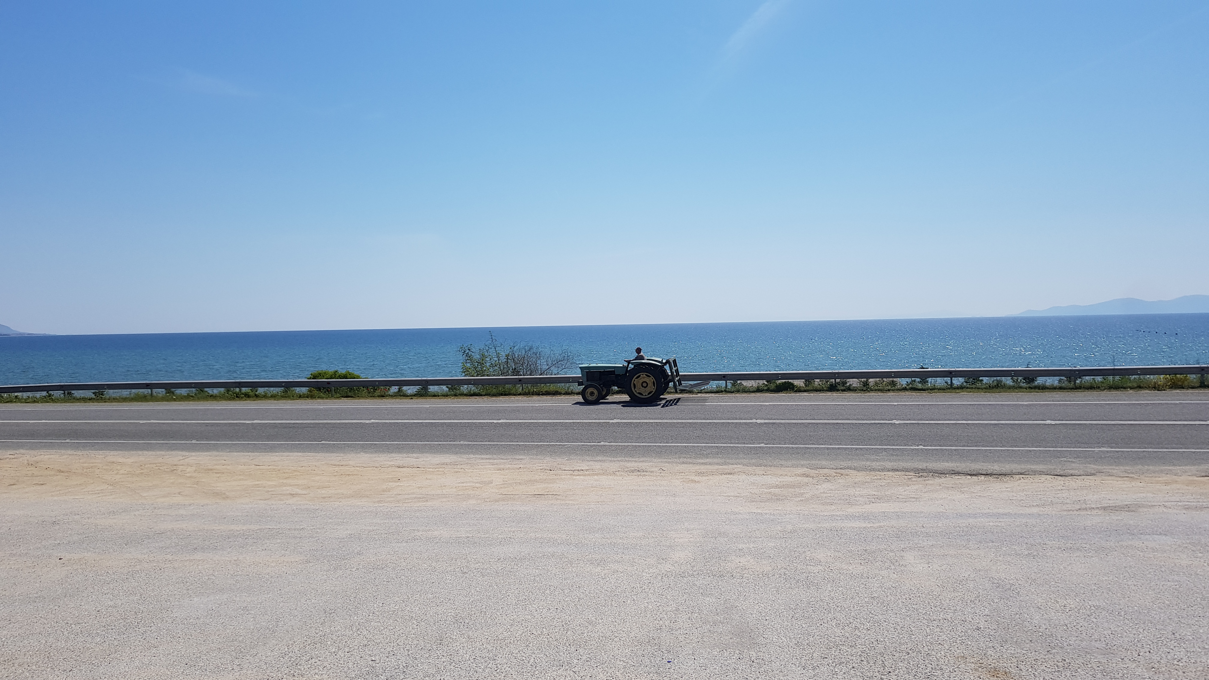 Um eine grosse Stadt zu verlassen, braucht es schon bisschen mehr Nerven. Viele kleine Strassen und dazu meistens voll mit Verkehr. Autos die das Gefühl haben, sie seien die wichtigsten und dieses Rollerfahrer welche Grundsätzlich keinen Fi** auf alle Regeln geben. Und so vergehen schon mal ein paar Stunden bis man wieder drausen ist. Ich denke beim herein fahren, fällt es nicht so auf, da man ja meistens Euphorisch ist einen neunen Ort zu sehen. Um hier den Kommentar meines grossen Bruders schonmal vorzubeugen: Ja Joel ich weiss Thessaloniki ist nicht gross und ich soll erst mal auf Istanbul warten….. Bla Bla Bla…. Es geht ja hier auch darum meinen Momentanen Gedanken niederzuschreiben. Und nicht zu vergleichen mit grösserem was noch kommen wird.