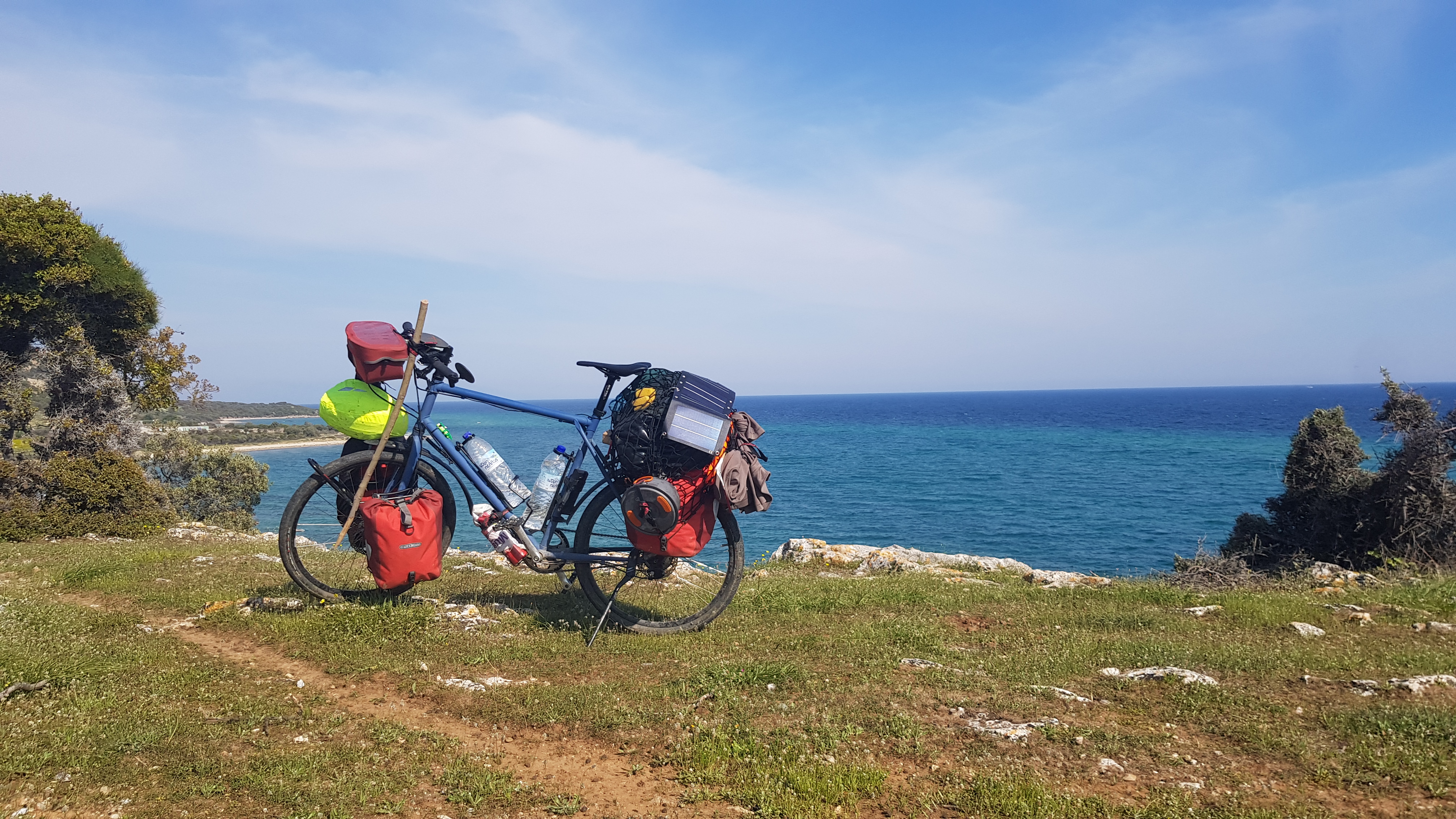 100 Kilometer bis nach Thessaloniki. Das war wohl einer meiner herrausfordesten Tage. Nicht sicher ob das Morgenessen in meinem Magen bleiben würde, machte ich mich auf den Weg. Nach 30 Kilometer fühlte ich mich schlapp und wenn ich kein Ziel vor Augen gehabt hätte, wäre dies wohl ein kurzer Tag geworden. Aber wie ich schon im Militär gelernt hatte, zählt der Wille mehr als der Körper. Und so wurden die Kilometer angegangen. Thessa kam immer näher und plötzlich war ich wieder am Meer. Da mir mein Host geschrieben hatte, ich solle ihn bei einer Bar treffen und das er spät nachhause gehen würde, überlegte ich mir ein Hostel zu nehmen.