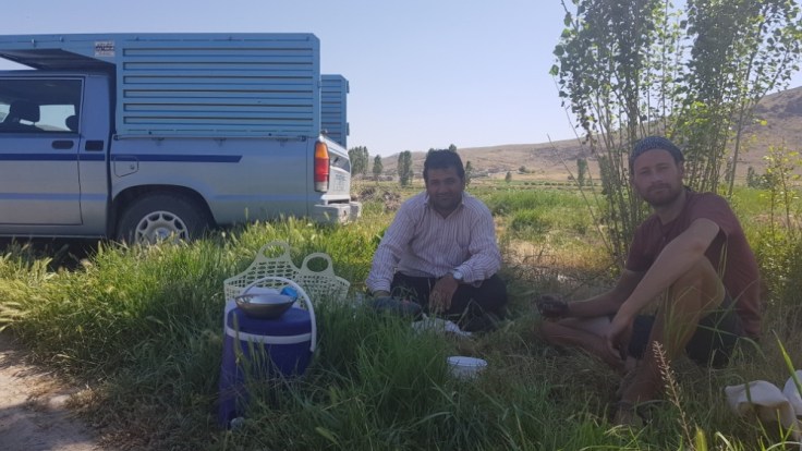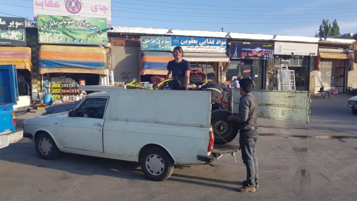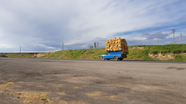 Meistens sind die Hauptstrassen nicht wirklich spannend und so haben wir angefangen abundzu Mitfahrgelegenheiten zu finden. Noch in der Türkei war es den meisten LKW-Fahrer egal, wenn man sich daran gehängt hat, hier werden wir, wenn wir gesehen werden, ausgebremst. Begründung sei die Angst vor der Polizei. Was wir aber nicht ganz verstehen können, denn bis jetzt haben wir fast nie eine Polizei gesehen, auch sehe ich kein Verstoss, wenn wir unsere Fahrräder auf die Ladefläche legen und ins Füherhaus steigen. Mehr Glück hatten wir mit Pickups, welche genügend Platz auf der Ladefläche haben für zwei Fahrräder und zwei Menschen. Wir werden wohl unsere Strategie im Iran anpassen müssen, wenn wir auf der Suche nach einer Mitfahrgelegenheit sind.
