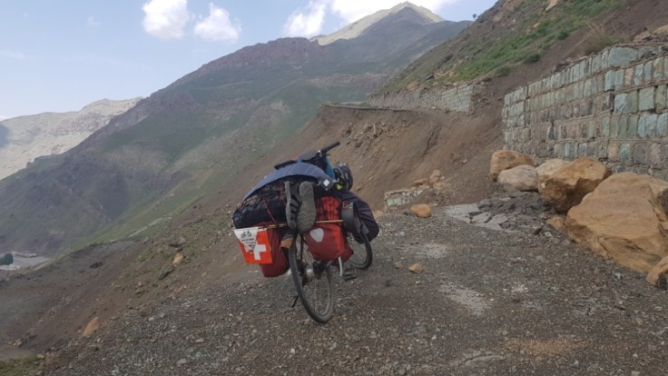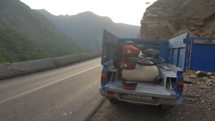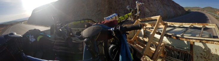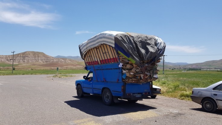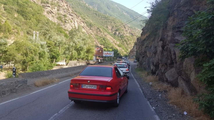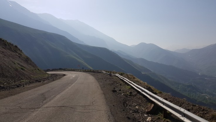 Der grösste Verkehrsalptraum erlebte ich aber von Tschalus, am Kaspischen Meer, in die Berge richtung Teheran. Dort gibt es nur eine Strasse, welche alle nutzen. Das ich dort hoch wollte als gerade die Ferien des Ramadans zuende waren, war nicht umedingt von Vorteilen. Denn gefühlt der ganze Iran mach in der Meerregion ferien. Denn dies ist schliesslich auch der einzige grüne Fleck in diesem Land. Wenn es etwas schlimmeres als viel Verkehr und Lärm auf einer Autostrasse gibt, ist es viel Verkehr und Lärm auf einer einspurigen Bergstrasse. Diese Strasse war böse, 2’500 Höhenmeter auf 70 Kilometer. Unter hoher körperlicher Belstaung einen Berg hochzufahren mit ständigem Autoverkehr ist der Horror. Ich habe gezählt, Durchschnittlich 25 Autos pro Minute. Das sind 1’500 Autos pro Stunde. Und an diesem Tag waren es wohl über 12’000 Autos welche alle 2 Sekunden an mir vorbeirauschten. Dazu kommen noch hupen und Zurufe. So viel Lärm kann nicht gesund sein. da die Strasse einspurig war, hatte ich natürlich auf keinen Pannenstreifen für mich alleine. Ich bin so übervordert mit dieser Siutaion. Da hilft nur noch Kopfhörer rein und die ganze Welt ignorieren. Die Strasse war wunderschön, konnte ich aber nicht geniessen. Nach 50 Kilometer konnte ich ein Pickupfahrer überzeugen, mich bis auf die Spitze des Berges zu chaufieren.