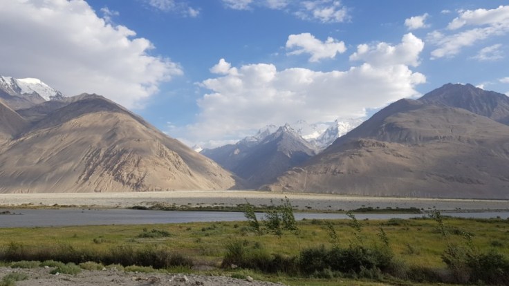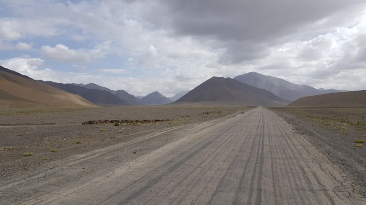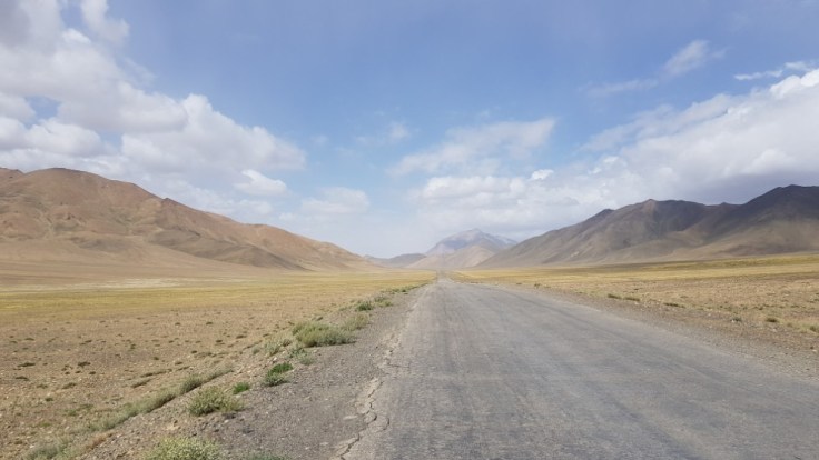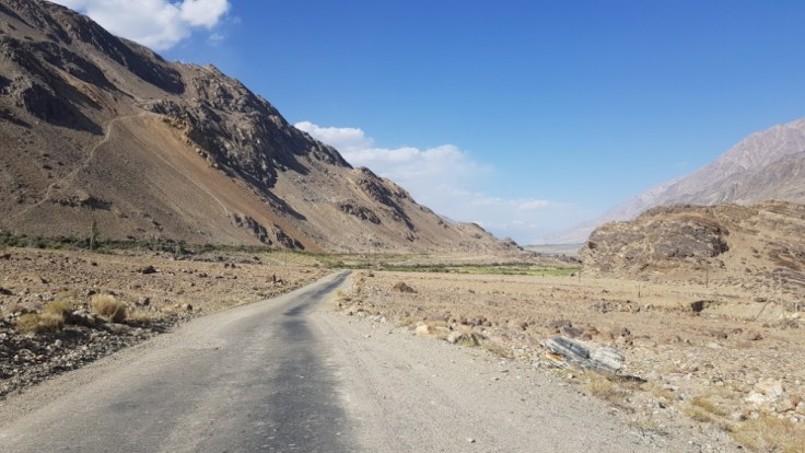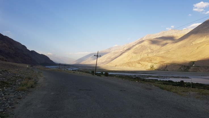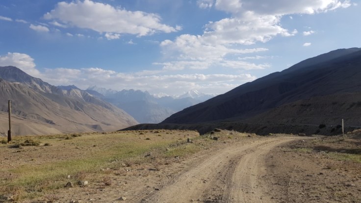 Der Schreck Whakan Tal ist dann aber ziemlich aprupt auch vorbei, nach dem es sich mit 10 Kilometer bester Holperfahrt verabschiedet trifft man wieder auf die M41, Pamir Highway. Asphalt, ohne Löcher einfach herrlich. Nach über 650 Kilometer und 12 Tage wiedermal Asphalt zu befahren ist toll. Sein Blick über die Berge schweifen zu lassen, ohne Angst haben zu müssen, das nächste Loch zu übersehen. Mehr als 15 Stundenkilometer zu fahren!