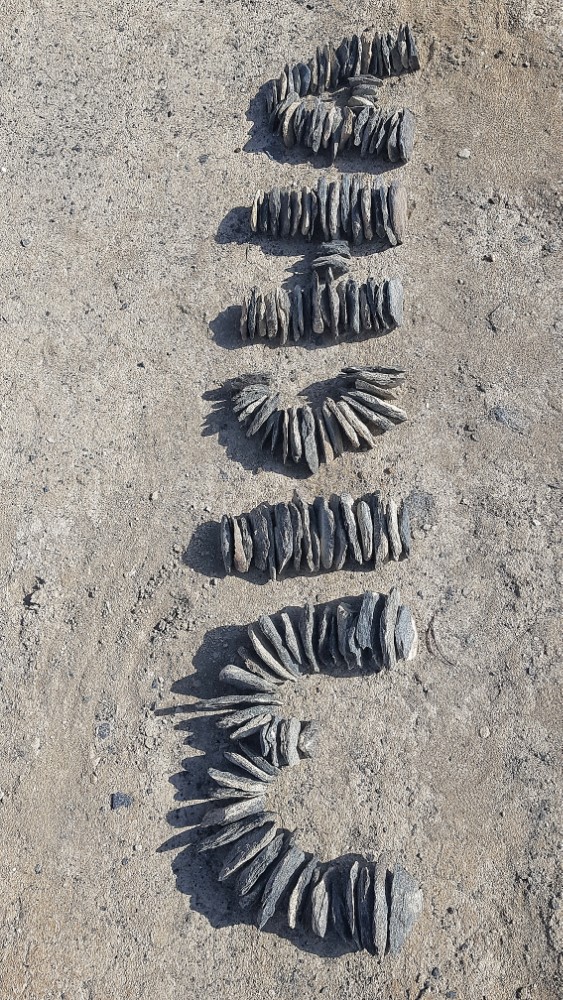 So suchte ich mir schon um 3 Uhr Nachmittags auf 4000 Meter einen schönen Zeltplatz neben einem klaren Flusslauf, welcher meine Wasserquelle für das Kochen und Abwaschen sein würde. 3 Uhr Nachmittag? Das ist aber viel Zeit für Kochen und Entspannten. Da sollte schon noch Etwas getan werden. Viele flache Steine lagen um meine Schlafstätte herum. Mit dem Plan „Micha weit weg“ künstlerisch auf dem Boden darzustellen, sammelte ich viele Steine zusammen. Doch nach über einer Stunde Arbeit, liess ich es dann mit „Micha“ beruhen. Das dauerte deutlich länger als gedacht und braucht auch viele Steine. Um die 160.