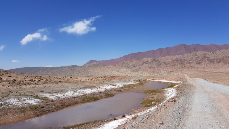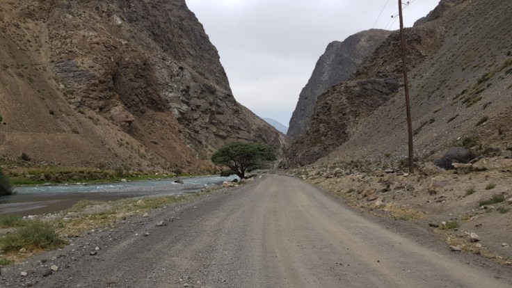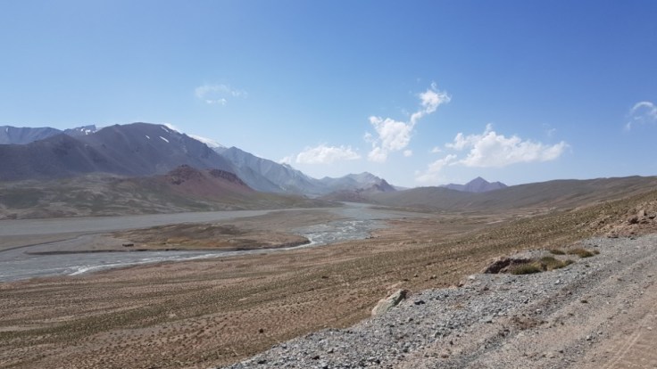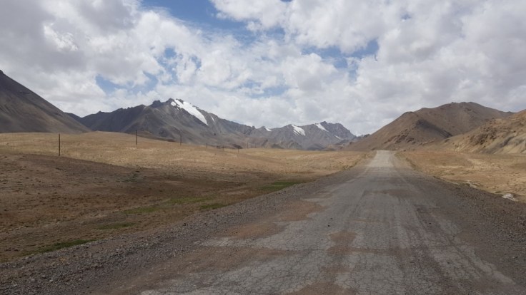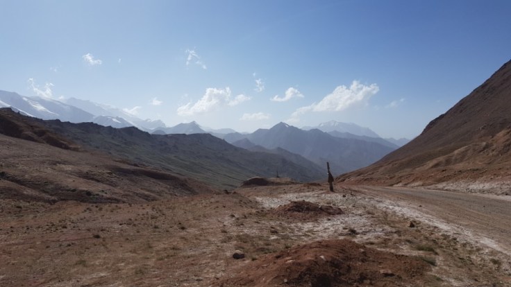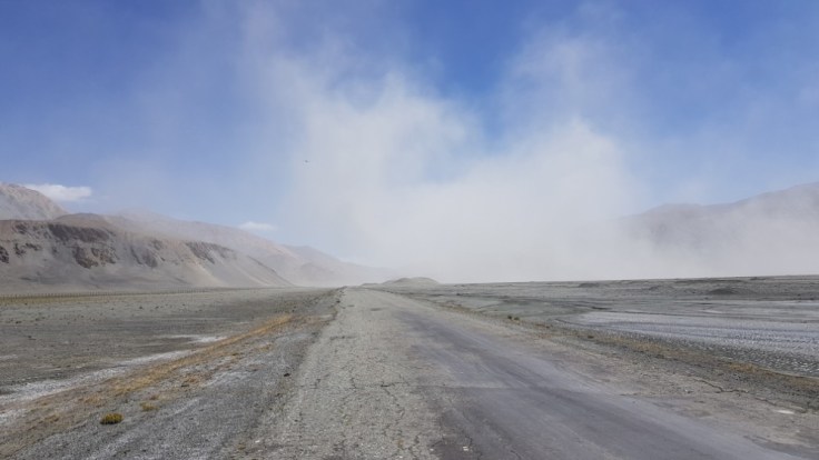 Der letzte Tag in Tadjikistan hatte es in sich. Kräftiger Wind zog über die Hochebene hinweg, meisten schräg von der Seite trafen mich die Windböhen. So stark, dass ich einen gewissen Winkel gegen den Wind, mal mehr oder weniger einnehmen musste, um nicht das Gleichgewicht zu verlieren. Das Tal vor der letzten Steigung hatte ziemlich sandigen Boden, welcher der Wind ohne grosse Mühe in riesige Wolken verwandelte, welche über die Strasse peitschten. Da musste ich teilweise anhalten, wenn mich so eine Wand erwischte. War sehr eindrücklich was die Natur so im stande ist zu tun und wie ausgeliefert ich in der Situation war. Nur noch einige Meter Sicht nach vorne und hinten. Zum Glück war die ganze Situation aber nicht unkontrollierbar gewesen.