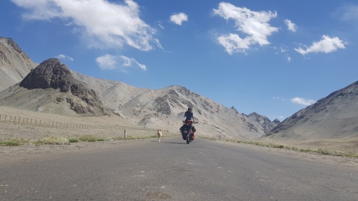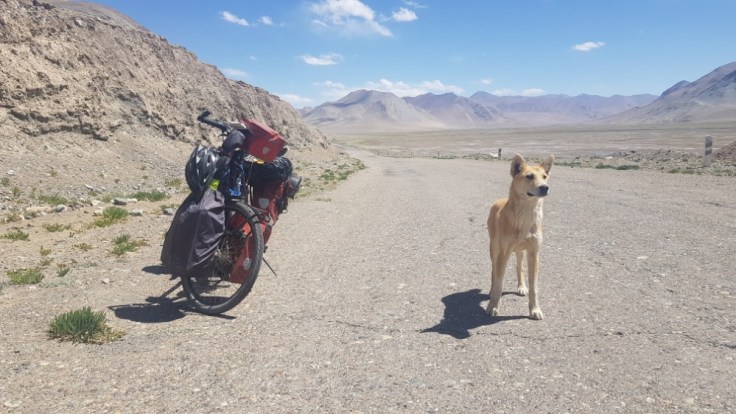 Habe ich bereits erwähnt das ich Hunde hasse? Gut, denn diese Meinung hat sich grundsätzlich auch nicht geändert, aber eines Morgens hatte sich eben so ein Tier zu meinem Zelt gesellt. Und wollte nicht mehr von meiner Seite weichen. Ah ich würde ihn dann schon abhängen, wenn ich wieder auf der Strasse bin, dachte ich mir. Dem war aber nicht so, mein neuer Begleiter entschloss sich mir ab nun zu folgen. Über 50 Kilometer an diesem Tag. In einer Langen Abfahrt, hatte ich ihn kurzzeitig abgehängt, im nächsten Dorf nach meinem Einkauf stand er aber überraschend wieder neben mir. Mittlerweile hatte er sich mit einer Dorfhündin angefreundet, Welche sich dann auch entschloss mir auf meinem Weg zu folgen. Schon interessant, denn ich habe den Beiden weder Essen noch Trinken gegeben. Also wirklich keinen Grund mich als neues Herrchen zu erkühren.