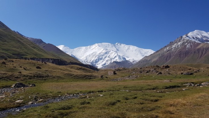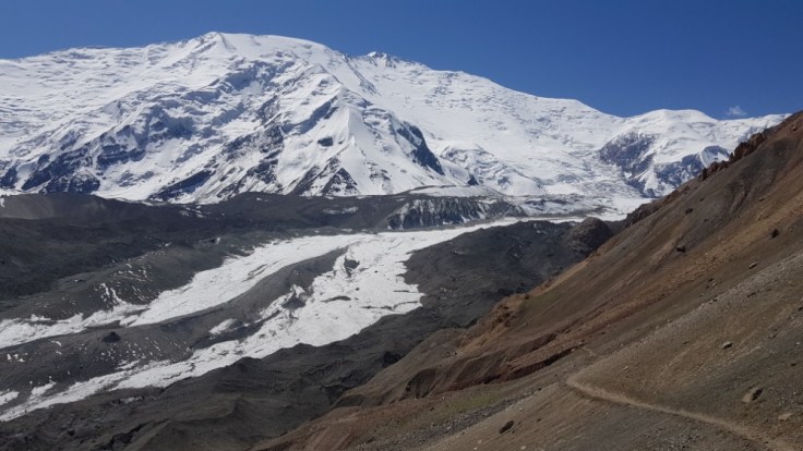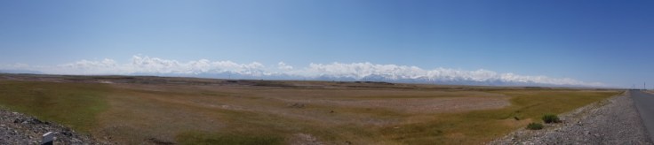 Wenn man sich der Grenze zu Kirgistan nähert bekommt man für einige Tagen am Horizont einen stillen Begleiter. Peak Lenin, ein 7000er Schneeberg, welcher wie eine Wand am Horizont aufragt und über das Gebiet wacht.