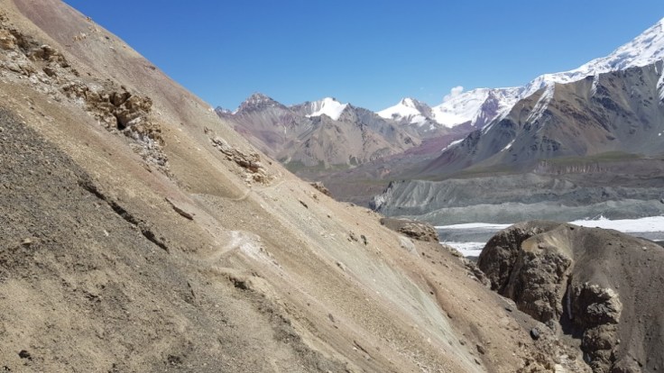Wenn man schon mal auf 4000 Meter und höher befindet, sollte man die Chance nutzen wenn möglich einen 5000er Berg zu erklimmen. Denn diese Möglichkeit hat man nicht jeden Tag. In dieser Region bietet sich der gleichnamige Berg Ak Baital mit 5102 Meter an. Über ca. 4 Kilometer und 700 Höhenmeter ist dieser Berg besteigbar. Für brauchbar einige Tage ohne mein Fahrrad auszukommen fehlt mir ein guter Rucksack. Das einzige was ich habe, ist ein 15 Liter Rucksack, welcher sich auf die grösse einer Faust zusammenknüllen lässt. Oke, für diese Expedtion würde ich mein Zelt nicht benötigen. Mein Gepäck würde sich auf zwei Liter Wasser, ein Brot, Regenjacke, 800 Dollar, Bankkarten und meinen Pass beschränken. Denn mein Fahrrad musste ich zurück lassen, da nehme ich zumindest die wichtigsten Sachen mit, dass ich im schlimmsten Fall immernoch nach Hause kommen würde.