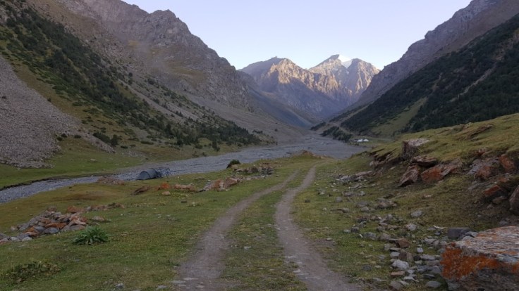 Ich merke gerade später ist bereits jetzt. Mein Plan war es nicht über die Hauptrute nach Osh zu fahren, denn ich verspürte den Drang nach Abenteuer in meinem Blut und so wollte ich über eine Pass, der sicherlich keine brauchbare Strasse mehr hatte, um nach Osh vorzudringen. Ich hatte während meiner Recherche herausgefunden, dass es dort eine alte Soviet Strasse geben sollte. War aber auf Fahrrad schieben und eventuell Gepäck tragen mental vorbereitet. Und ich hatte Lust darauf eine Herrausvorderung zu haben. Auch war meine Vorstellung, was eine alte Soviet Strasse sein würde ein bisschen falsch, was sich aber noch zeigen würde.