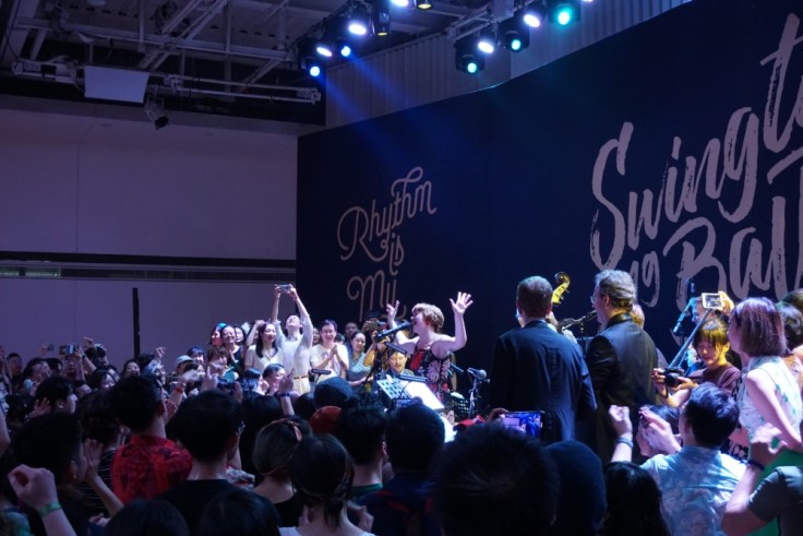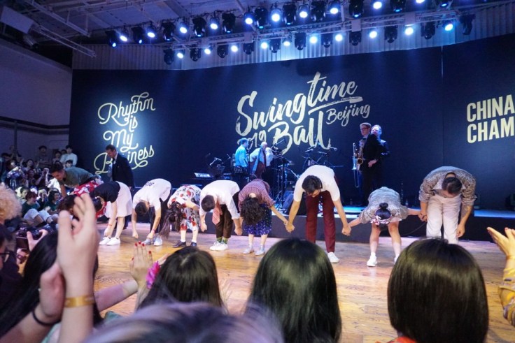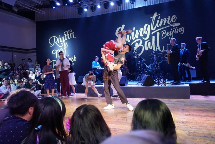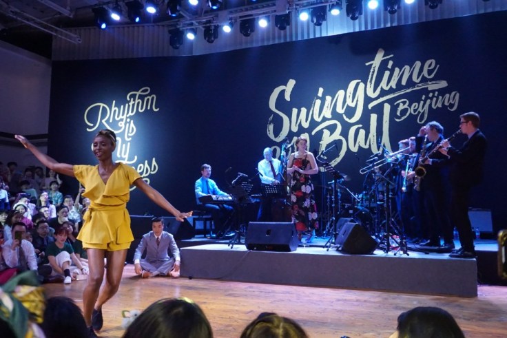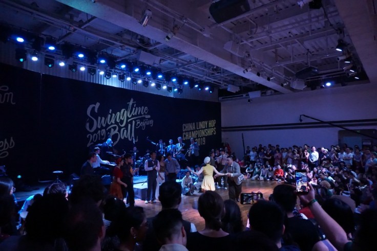 Dann war da noch der Swingtimeball (STB), welcher der eigentliche Grund für mich war, nach Peking zu kommen. Der STB ist ein grosses Lindyhopfestival über 3 grosse Wochenende Party mit Livemusik und allem was dazugehört. Dieser hatte ich im Internet gefunden und mich deshalb entschieden nach Peking zu kommen. Zum Glück habe ich dann durch genauere Recherchen herausgefunden, das es noch viel mehr zu tun gibt.Für dies Festival haben sich die Organisatoren eine riesige Halle gebucht. Auf 400 Quadratmeter tummelten sich über 500 Tänzer. Eine riesige Sache. Der grösste Tanzraum welcher ich bis jetzt gesehen hatte. Dieser war mir persönlich sogar schon zu gross, es fühlte sich an in einem grossen Meer zu schwimmen, ohne Überblick wer wo genau ist. Die Stimmung war aber genial und auch die Einrichtung er Halle war sehr imposant, gerade diese Bühne hat es mir angetan.