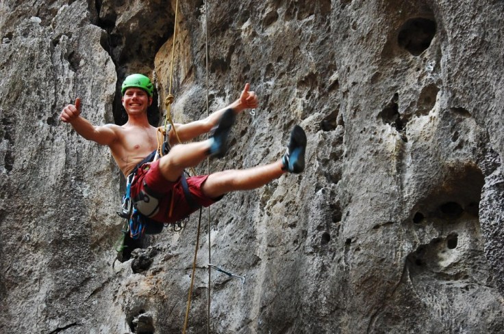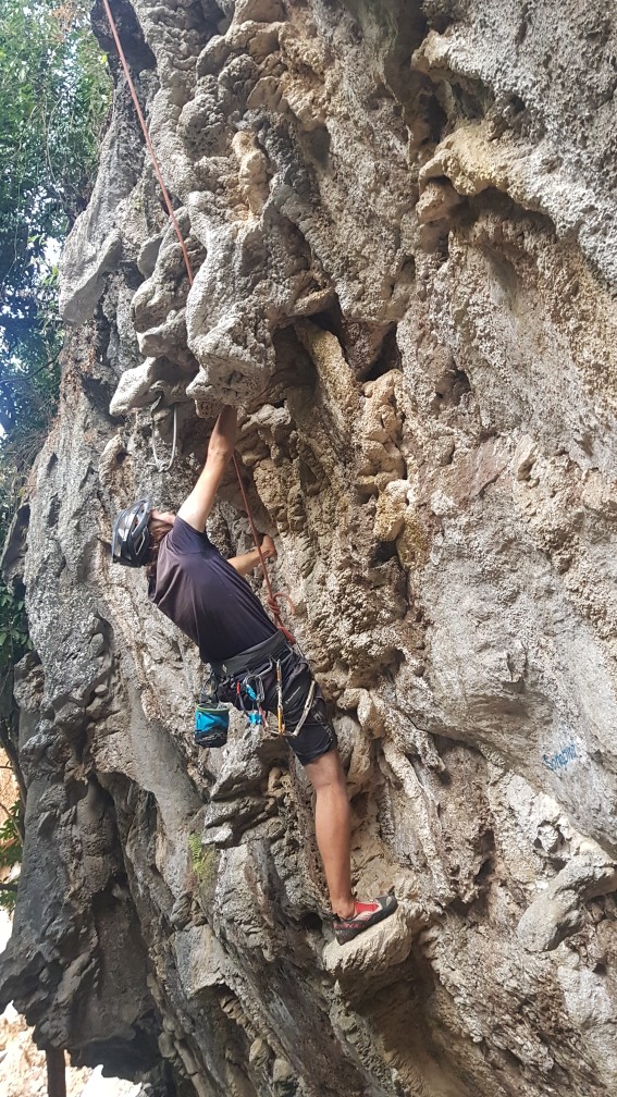 In Thakhek angekommen hörte ich über ein „Green Climbers Home“, welches einer der schönsten Orte für Felsklettern in Laos ist. Und aus einer Spontanität heraus, buchte ich einen Kletterkurs, denn mal die Grundlagen des Klettern mit Seils zu verstehen, war schon seit längerem eine Idee, welche in meinem Kopf herum schwirrte. Und wo würde ich das günstiger lernen als hier in Laos. Ich wollte auch das beste aus diesem einen Tag herausnehmen und buchte deswegen einen Kurs für mich alleine. So würde zwar mehr Geld ausgegeben werden, aber die Chance das ich auch mehr Infos bekommen würde, war gross. So zumindest in meinem Kopf.
