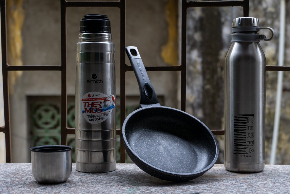 Zum Abschluss noch ein kleines Anderes Thema. Da es in den letzten Wochen so heiss war, hatte ich immer ein grosses Verlangen nach kaltem Wasser. Und stoppte viel bei Restaurants. Doch selbst wenn man sich Kaltes Wasser kaufen würde, war dies in 30 Minuten wieder warm. Deswegen besorgte ich mir zwei grosse Thermosflaschen um das Nass über längere Zeit kühl zu halten. Es ist genial! Ebenfalls habe ich ein Problem in meiner Küche beseitigt. Ich war genervt von meinem Titanium Topf und den beschränkten Möglichkeiten welcher dieser zum Kochen bietet. Denn alles brennt an. So habe ich mir eine kleine Marmor Bratpfanne gekauft, welche einfach genial ist. Nun kann ich z.B. Crepes machen, Spiegeleier oder auch einfach gemütlich Gemüse anbraten. Es eröffnet so viele neue Möglichkeiten, was Spass macht.