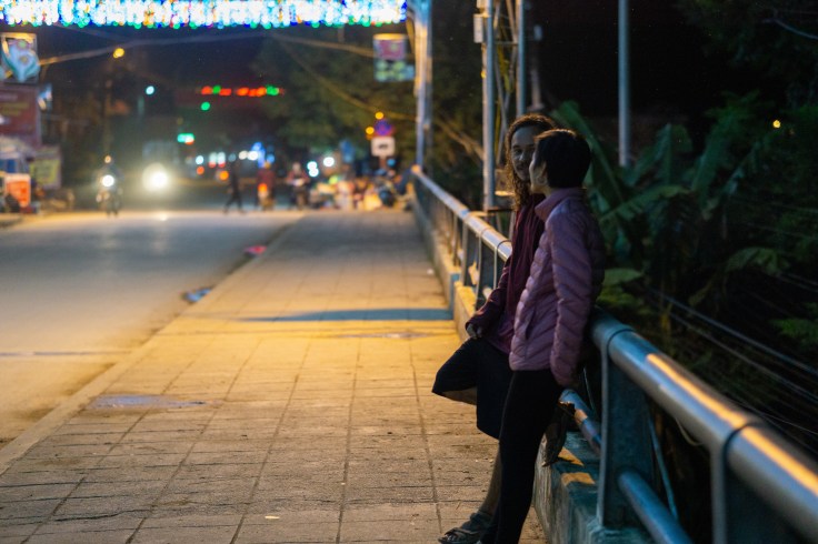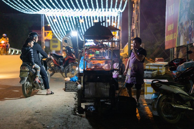 Der Mann im Cafe bot uns ein Zimmer für die Nacht an und wir kochten mit seiner Familie zusammen, so mussten wir nicht einmal ein Zelt aufstellen. Gute Sache. Auch das Foto gelang am Abend genau nach Vorstellung. Die Leute waren ganz angetan ihre Straße in einem anderen Licht zu sehen. Leo hatte uns an diesem Abend verlassen um zurück nach Bao Lac zufahren um von dort weiter Richtung